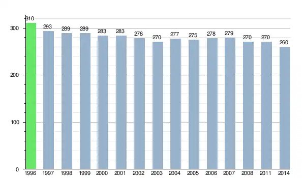 Według danych z dnia 31 grudnia 2012, wieś zamieszkiwało 258 osób, w tym 131 kobiet i 127 mężczyzn[7].