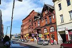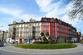 - Kamienica (ul. Śląska 13)[52] – kamienica w stylu eklektycznym[26]; na frontowej elewacji znajdują się dwa symetrycznie osadzone ryzality, w których wystają wykusze zwieńczone arkadami, będące jednocześnie parapetami balkonów trzeciego piętra; linię dachu budynku urozmaica biegnący pod wąskim gzymsem fryz arkadowy[57];