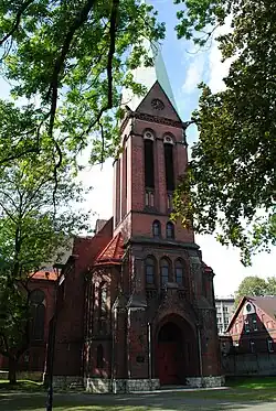 - Kościół ewangelicko-augsburski im. Marcina Lutra (ul. Śląska 28) – wpisany do rejestru zabytków (nr rej. A/315/10)[64]; świątynię wzniesiono w latach 1893–1895 według projektu Franza Poserna z Pszczyny; organy kościelne wykonało przedsiębiorstwo Schlag & Söhne, witraże – Türcke & Schlein, natomiast dzwony – Bochumer-Stahlwerk Verein; po II wojnie światowej usunięto z wnętrza kościoła freski, umieszczone na ścianach transeptu i na łuku tęczowym, a ich autorami byli Willi Fitzner i Margarethe Spindler-Hahn; w latach 1946–2000 kościołem zarządzały siostry wizytki, po czym świątynię zwrócono gminie ewangelickiej[65].
