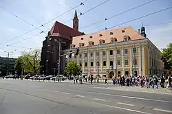 | Klasztor franciszkanów, od 1530 r. norbertanów, po 1810 r. - Wyższy Sąd Krajowy, po 1945 r. budynek Uniwersytetu Wrocławskiego, obecnie Instytut Filologii Romańskiej UWr., plac Biskupa Nankiera 15b[12][48] | połowa XIII wieku, druga połowa XIII wieku, początek XVII wieku (przebudowa), lata 1682–1695, początek XX wieku, 1929 (renowacja), po 1945 r., 2009 r. (renowacja i remont)[12] (1232 r., XIV, XVII – XVIII wiek, po 1945 r.[48]) zespół klasztorny premonstrantów[48]: |