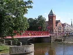 - Most Piaskowy[8][31] i dalej ulica św. Jadwigi[31][32], z torowiskiem tramwajowym[28][29][31]