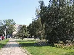 | skwer z zielenią parkową i ciągami pieszymi | 1400 m²[64] | ![]() |