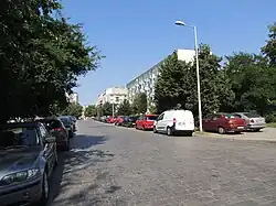 - prostopadle do ulicy wzdłuż skweru w ramach ulicy Pereca[102]