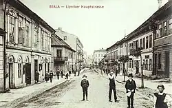 Duże zmiany w zabudowie ulicy nastąpiły na przełomie XIX i XX wieku, gdy dwumiasto zaczęło się rozrastać i jako ważny ośrodek przemysłowy wykazywać wielkomiejskie aspiracje. Zwłaszcza na bielskim odcinku dawna architektura została w większości zastąpiona przez wysokie kamienice w duchu historyzmu i secesji, m.in. w 1893 wyrosła według projektu Carla Korna kamienica radcy cesarskiego Viktora Burdy z charakterystyczną nadbrzeżną fasadą, do której podziemi wkomponowano ujście skanalizowanego potoku Niper[5]. W Białej nowy ruch budowlany skupił się głównie w rejonie rynków – Josefsplatzu (dziś plac Wojska Polskiego) i Franzensplatzu (dziś plac Wolności). Wyraźną dysharmonię wśród zabudowy józefińskiej wprowadziła wybudowana około 1913 trzypiętrowa wczesnomodernistyczna kamienica braci Landau na rogu dzisiejszej ulicy Krótkiej (wówczas Auweg)[6]. W 1890 ulicę noszącą dotąd nazwę Wiedeńskiej (Wiener Straße) przemianowano, zarówno w Bielsku, jak i Białej, na Hauptstraße (Główna). Odcinek lipnicki nosił odpowiednio nazwę Lipniker Hauptstraße[7]. 23 kwietnia 1890 stała się ona areną najgłośniejszej demonstracji robotniczej w dziejach dwumiasta. Trzytysięczne zgromadzenie poprzedzające planowany strajk pierwszomajowy przerodziło się w zamieszki, które zostały stłumione przez wojsko, pociągając za sobą śmierć jedenastu osób i wielu rannych[8]. W 1895 przygotowano plan budowy linii tramwajowej w ciągu ulicy Głównej aż do skrzyżowania z Żywiecką, inwestycji jednak nigdy nie zrealizowano, mimo że do tematu powracano jeszcze kilkukrotnie[9]. W latach 1896–1897 powstał nowy kratownicowy most na rzece Białej[10].