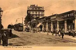 W 1895 uruchomiono w Bielsku linię tramwaju elektrycznego, której trasa biegła m.in. przez Franz-Josef-Straße. Znajdowały się tu trzy przystanki: przy dworcu kolejowym, u wylotu dzisiejszej ulicy Dąbrowskiego (Haasestraße) i przy hotelu Kaiserhof.