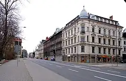 - nr 27 – kamienica Michaela Neumanna, 1895, proj. Alexander Neumann; od późniejszych właścicieli znana też jako kamienica Berty Mikesch (1904–1908) lub kamienica Georga Schwabego (1908–1924); znajduje się na niej tablica poświęcona gen. Józefowi Kustroniowi, który mieszkał tu w latach 1937–1939