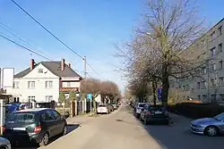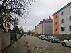 ![]() ul. Adama Mickiewicza, widok w kierunku południowym. Widoczne zabudowania dawnych koszar | |||||||||||||||||||||||||||||||
