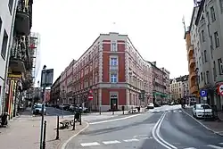 - narożna kamienica mieszkalna (ul. Andrzeja 29, róg z ul. ks. A. Kordeckiego)[19].