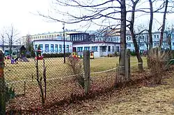 - zabytkowy budynek przedszkola (ul. Barbary 25); wpisany do rejestru zabytków dnia 29 kwietnia 1988 (nr rej.: A/1364/88, nr rej.: A/522/2019)[5][6], wzniesiony w 1938 w stylu funkcjonalizmu (typ architektury okrętowej) jako integralna część większego założenia dawnego Ogrodu Jordanowskiego[7]; na dachu pawilonu pierwotnie było zlokalizowane solarium na świeżym powietrzu[8].; w 2011 planowane jest zrekonstruowanie sceny do plenerowych występów na terenie dawnego ogrodu[9];