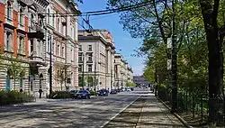 ![]() Widok od skrzyżowania z ul.Pawią na zachód. Po lewej Planty, po prawej Kleparz. | |||||||||||||||||||||||||||||||||||||||||||||||||