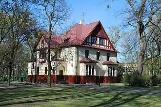 - nr 15 – postsecesyjna willa dawnego Towarzystwa Akcyjnego Sukiennej Manufaktury „Leonhardt – Woelker – Girbardt” wzniesiona w latach 1907–1909 dla niemieckiego fabrykanta Ernsta Leonhardta[103], siedziba Domu Dziecka nr 6 im. Stanisława Jachowicza[104],