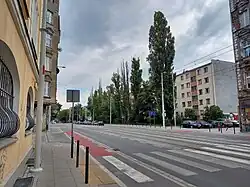 - 1 2 Powierzchnia terenu przypisana do ulicy określona jest na podstawie powierzchni działek ewidencyjnych przypisanych do tej ulicy w zestawieniu udostępnianym przez zarządcę drogi: Zarząd Dróg i Utrzymania Miasta (ZDiUM). W każdym przypadku teren samego skrzyżowania z inną ulicą może być przypisany do jednej z ulic, a tym samym powierzchnia terenu samego skrzyżowania może być przypisana do ulicy lub być pominięta jako uwzględniona w innej ulicy. Dotyczy to prawdopodobnie także długości ulicy podawanej przez zarządcę drogi, który nie opisuje w jaki sposób jest ona określana. Najprawdopodobniej jest ona określana jako suma długości drogi w obrębie działek ewidencyjnych przypisanych do danej drogi, co oznacza, że długość odcinka w obrębie skrzyżowania jest przypisana tylko jednej z krzyżujących się ulic, tej do której ulicy przypisano daną działkę.