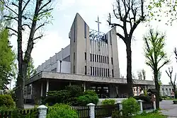 - Kościół św. Jacka (róg ul. B. Prusa i ul. Leśnej) – przebudowany w latach 70. XX wieku[25]; jest to obiekt o konstrukcji żelbetowej, tynkowany, trójnawowy, z obejściem; fasada znajduje się od strony południowej i posiada dwie wieże, pomiędzy którymi znajduje się metalowa konstrukcja z zawieszonymi dzwonami zwieńczona krzyżem; elewacje nawy głównej, naw bocznych oraz fasady zrytmizowane są wertykalnie za pomocą czworokątnych filarów i wysmukłych prostokątnych, głęboko osadzonych okiem[26],