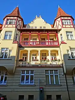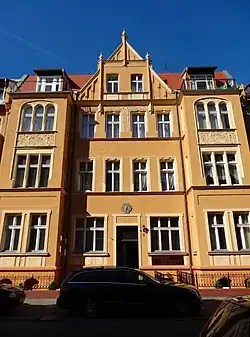 | 16. | Cieszkowskiego 17 | 1897–1898 | Józef Święcicki | eklektyzm, neogotyk | w latach 1993−1994 zrekonstruowano detale architektoniczne oraz nadano pierwotną kolorystykę | ![]() | |