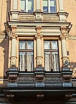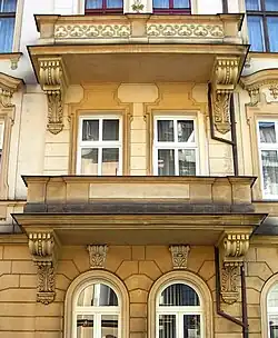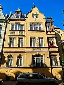 | 10. | Cieszkowskiego 10 | 1902–1903 | Rudolf Kern | eklektyzm, secesja | asymetryczna dekoracja fasady z przewagą ornamentyki secesyjnej | ![]() | |