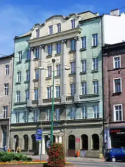 - kamienica narożna (ul. Dworcowa 1, róg z ul. A. Mielęckiego), wzniesiona na początku XX wieku w stylu modernistycznym[21]; w latach 70./80. XX w. mieścił się tam Instytut Ekonomiki Transportu ówczesnej Akademii Ekonomicznej w Katowicach[22].