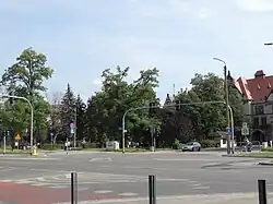 - ↑ Widok na Villa Vratislavia od strony ulicy Gajowej, dalej w tle Dyrekcyjna 33.