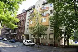 Dom nr 3, z czerwonej cegły, pochodzi z początku XX w.; blok nr 4-8, jest typowo socrealistyczny z lat 50. XX w., 2 sąsiednie budynki powstały po 1935 r. Znaczną część południowej strony ulicy zajmuje Szkoła Podstawowa nr 9, tu też wzniesiono pod nr 5, współczesną plombę mieszkalną z końca XX w.