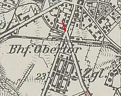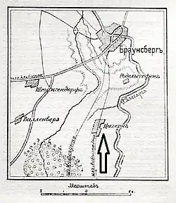 - ↑ Deutsche Heereskarte, Blatt 1684, Braunsberg (West), 1:25 000, 1944, oznaczona S.W. (Sägewerk)