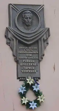 Po nadaniu nowej nazwy "ul. Generała Czuprynki" w 1996 na fasadzie Liceum nr 10 z polskim językiem nauczania (tzw. szkoły polskiej) decyzją władz miejskich Lwowa została ustanowiona tablica pamiątkowa na cześć patrona ulicy – gen. Romana Szuchewycza, naczelnego dowódcy UPA. W sprawie antypolskiej tablicy pamiątkowej bezskutecznie inwerweniował Konsul Generalny RP we Lwowie[52].