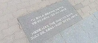 - Tablica pamiątkowa w językach polskim i hebrajskim na kamienicy przy ul. Malmeda 10