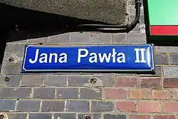 Ulica Jana Pawła II według jednej z map została wytyczona przed 1883 rokiem – według niej istniał już odcinek współczesnej ulicy pomiędzy ulicą Z. Krasińskiego a ulicą św. Barbary[10]. Według innej zaś mapy, wydanej w 1902 roku, ulica św. Jana Pawła II jeszcze nie istniała[11]. Pierwotnie nazywała się ona Hohenzollernstrasse[12]. W rejonie dzisiejszej ulicy Jana Pawła II powstał szpital Spółki Brackiej – funkcjonował jako system pawilonów otoczonych zielenią, powstałych w okresie lat 1868–1909[13]. Do czasów obecnych przetrwał zabytkowy gmach oddany do użytku w 1909 roku[14].