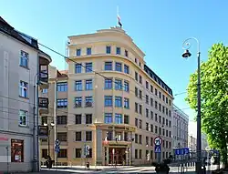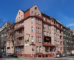 - narożna kamienica mieszkalna (ul. J. Ligonia 16, ul. Wita Stwosza 6)[15]; w dwudziestoleciu międzywojennym w budynku tym istniała klinika dla chorób kobiecych doktora Kazimierza Wędlikowskiego[17];