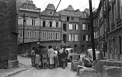 ![]() Dawne domy kanoników kolegiaty św. Jana przy Kanonii, widoczny dzwon odlany przez Daniela Tyma | |