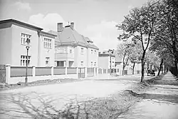 Północna strona szosy do Starych Tarnowic pozostawała niezagospodarowana dłużej – do początku lat 20. XX wieku pokrywały ją rozległe nieużytki powydobywcze oraz pola i łąki. Decyzją tarnogórskiego magistratu tereny te zostały przeznaczone pod budowę domów dla urzędników; pierwsze dwie bliźniacze jednopiętrowe wille ze spadzistymi dachami i drewnianymi altankami nad dwoma odrębnymi bocznymi gankami wejściowymi ukończono w 1924 roku pod numerami 17-19 i 21-23[20][24]. Obok nich trzy lata później własną willę wzniósł budowniczy miejski, Piotr Heda[20]. W grudniu 1934 roku przy ul. Starotarnowickiej 7, przy skrzyżowaniu z ul. Parkową, oddano z kolei do użytku piętrowy dom leśniczego Jerzego Reicha, wybudowany w stylu funkcjonalizmu według projektu architekta Józefa Pietruchy. Stojący do dziś budynek posiada m.in. obszerny hall ze schodami i półokrągłą werandę, nad którą znajduje się półokrągły taras z poręczami nawiązujący do tzw. stylu okrętowego[25].