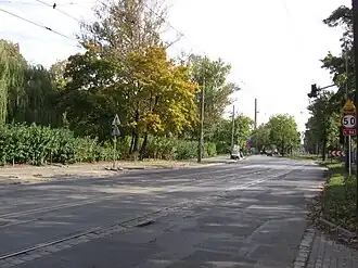 Widok z wiaduktu (al. Armii Krajowej) w kierunku północno-zachodnim podczas remontu ulicy w roku 2008 | |