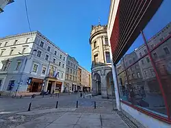 | 16 | Kamienica z częścią usługową, obecnie budynek biurowo-usługowy (od ul. Biskupiej – XVI-wiek portal z Rynek 12))[29] zamyka oś widokową w kierunku południowym, pierzeja zachodnia[d] |