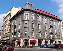 - Narożna kamienica mieszkalna (ul. Mariacka 24, róg z ul. Francuską)[36]. W dwudziestoleciu międzywojennym zlokalizowany był tutaj oddział Banku Śląskiego - Banque de Silésie SA oraz restauracja Józefa Adamaszka.