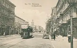 - ↑ Warszawskie tramwaje elektryczne 1908−1998. Tom I. Warszawa: Wydawnictwa Komunikacji i Łączności, 1998, s. 6. ISBN 83-907574-00.