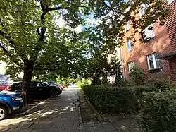 - szpaler drzew, wzdłuż ulicy obustronnie, z wyłączeniem odcinka przy numerach 1, 3, 5 po stronie zachodniej[12].