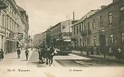 - ↑ Warszawskie tramwaje elektryczne 1908−1998. Tom I. Warszawa: Wydawnictwa Komunikacji i Łączności, 1998, s. 6. ISBN 83-907574-00.