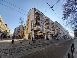 - skrzyżowanie: ulica Szewska[12], jednotorowa linii tramwajowa[13]