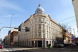 - narożna kamienica mieszkalna (ul. Powstańców 21, ul. H. Sienkiewicza 45)[14];