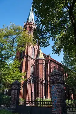 - Kościół Apostołów Piotra i Pawła (ul. Powstańców 5) – świątynia ewangelicko-augsburska należąca do mysłowickiej parafii; z lat 1875–1877, według projektu Paula Jackischa w stylu neogotyku[45]; jest to obiekt wzniesiony z czerwonej cegły, jednonawowy, z wieżą od strony zachodniej i prezbiterium od wschodu; posiada neogotyckie wyposażenie z końca XIX wieku[47]; kościół wpisany jest do rejestru zabytków nieruchomych 17 grudnia 1997 roku pod nr. A/1661/97[45],
