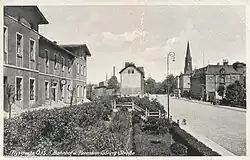 Ówczesna Bahnhofstrasse do końca XIX wieku stała się ekskluzywną ulicą, przy której wzniesiono ratusz, kościół ewangelicki, dwa budynki mieszkalne pracowników kolei i budynek hotelowo-gastronomiczny. Od hotelu do Promenady rozciągała się Poststrasse, przy której powstał gmach poczty, willa gminy ewangelickiej, fabryka Schneidera i kamienica Maxa Weichmanna[20].