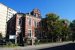 - Budynek probostwa parafii Krzyża Świętego (ul. Powstańców 2) – znajduje się naprzeciwko kaplicy; powstały w 1888 roku według projektu Paula Jackischa; w 1915 roku do probostwa od strony południowej wzniesiono oratorium[43],