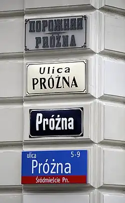 ![]() Ulica Próżna, widok z placu Grzybowskiego (2018) | |||||||||||||