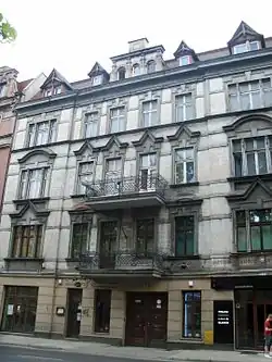 - kamienica mieszkalna (ul. Sokolska 9)[20], posiada parter, trzy piętra i poddasze;