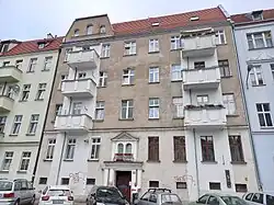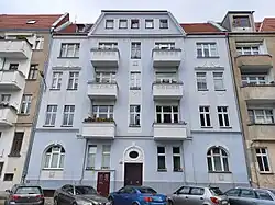 | Budynek mieszkalny, ulica Krucza 61-63-65-67-69-71-73[6][90][91] | 1926 r. (projekt B.D.A. Wahlich und Grau; Hermann Wahlich i Erwin Grau), lata 1927-1930 rodzaj ochrony: inny[6] |