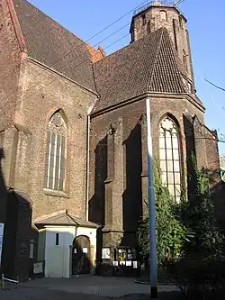 - dawny kościół św. Agnieszki (wcześniej kaplica św. Jerzego), gotycki, prezbiterium z 1282, nawa z XIV w., w 1811 sekularyzowany (zburzone prezbiterium zastąpiono kamienicą, zaś nawę przekształcono na magazyn), w 1897 nawa przebudowana na dom mieszkalny