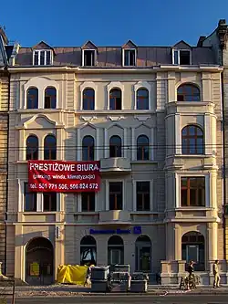 - Budynek (ul. Warszawska 28) (róg z ul. św. Pawła[30]), wybudowany w 1928 według projektu Gustava Kutschki na planie w kształcie odwróconej litery "U". W budynku mieszkał Teodor Obremba[40].