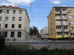 Po stronie zachodniej ulicy na odcinku od placu Teatralnego do ulicy Menniczej znajduje się „Mediateka”, mieszcząca się zabytkowym budynku dawnej słodowni[23] (ok. roku 1900 przebudowanej na palarnię kawy Otto Stieblera), oraz teren zielony[24]. Pomiędzy ulicą Menniczą a Kazimierza Wielkiego teren zabudowany jest trzema powojennymi budynkami mieszkalnymi[1][25].