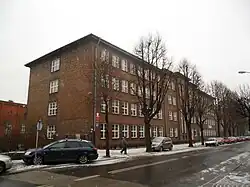 Budynek szkolny przy ulicy Wileńskiej 6, który powstał dzięki inicjatywie Adolfa Kaschnego, został oddawany do użytku stopniowo, w 1932 roku i 1 kwietnia 1934 roku. Początkowo mieścił trzy szkoły zawodowe: rzemieślniczą (Gewerbliche Berufsschule), kupiecką (Kaufmännische Berufschule), dla drogistów (Drogistenfachschule) oraz Wyższą Szkołę Handlową (Höhere Handelsschule) i Miejską Szkołę Handlową (Städtische Handelsschule)[3][17][18]. Budynek wyposażono w schron przeciwlotniczy, a w roku 1944 urządzono w nim wojskowy lazaret[3]. Pod koniec II wojny światowej jeden z narożników został zniszczony przez bombę. Polskie władze przejęły budynek 24 czerwca 1945 roku. Pierwsze zajęcia odbyły się jeszcze 15 października tego samego roku, a 1 września kolejnego roku uruchomiono klasę stolarską oraz dwie klasy dokształcające z różnych zawodów. Przez lata w budynku mieściło się wiele rodzajów szkół[33]. Obecnie mieszczą się tam: Technikum Nr 2, Technikum Uzupełniające Nr 2 dla Dorosłych, Zasadnicza Szkoła Zawodowa Nr 2 oraz Szkoła Policealna Nr 2[34]. Do szkoły należy także powstała w 1894 roku sala gimnastyczna znajdująca się przed wejściem do budynku. Przed powstaniem szkoły służyła jako miejska hala sportowa[17][18][11].