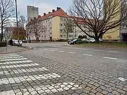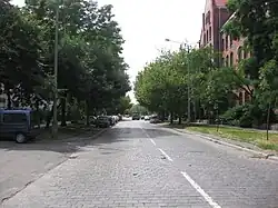 | zachodnia | budynek mieszkalny ulica Wróbla 39–43[9][89] (ulica Sztabowa 23[f][90]) |