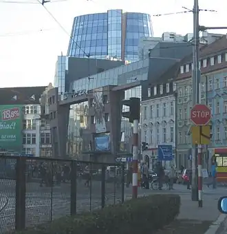 Po II wojnie światowej zabudowa Złotego Koła i okolicznych ulic była w znacznym stopniu zdewastowana. W latach 70. XX wieku, podczas przeprowadzania wrocławskiej trasy W-Z po linii dawnej Czarnej Oławy większość zabudowy Złotego Koła została wyburzona, jedynie część jej zachodniej pierzei (kamienice nr: 4, 5, 6, 7, 8) została zachowana i włączona do ul. Kazimierza Wielkiego (jako kamienice nr: 9, 11, 13, 15, 17, wspólnie określane jako Kamienica Pod Złotym Kołem).