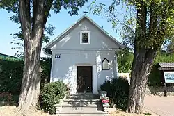 - przy placyku na skrzyżowaniu z ul. Źródlaną stoi kaplica wotywna pw. Przemienienia Pańskiego (Zdrojowa 24)[1]. Nad wejściem znajduje się data 1875, jednak kaplica została zbudowana w 1710 roku w intencji odwrócenia zarazy dżumy. Kaplica ta służyła mieszkańcom za kościół w okresach, gdy nie było możliwe przedostanie się na lewy brzeg Dunajca, na msze do kościoła parafialnego na krościeńskim rynku. Wewnątrz kaplicy znajdują się obrazy: Oblicze przemienionego Pana Jezusa pędzla Stanisława Bochyńskiego z Maniów (1925 rok), Święta Kinga i Święty Krzysztof – dwa ostatnie obrazy namalowane przez Jadwigę Karkoszkę z Jaworek w 1986 roku. Rzeźby w barokowym ołtarzu przedstawiają Mojżesza i Eliasza i pochodzą z XVII wieku. Nad drzwiami kaplicy – rzeźba św. Floriana, modrzewiowe drzwi wykonał K. Czepiel z Krościenka, a krata wykonana została przez Jana Komorka z Krościenka według projektu Włodzimierza Kunza;